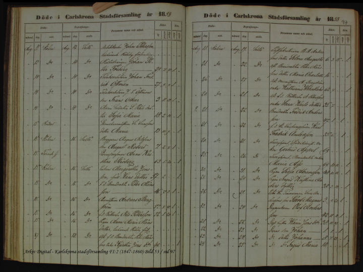 Döda i kolera i Karlskrona 1853