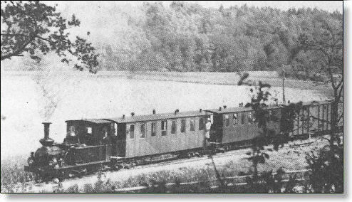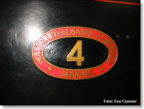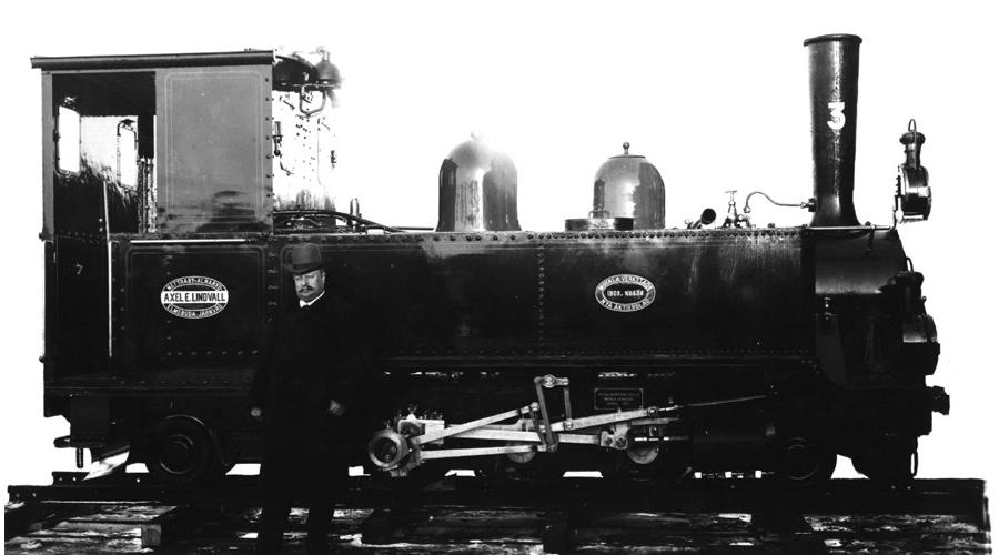 Axel Edvard Lindvall i Nättraby (1852-1931) och Karl Manfred Nelsson i Björkeryd (1856-1917) var de drivande krafterna bakom anläggningen av den smalspåriga järnvägen. De gav namn åt varsitt ånglok. Här ovan är leveransfotot av Axel E Lindvall med namngivaren själv med på bilden. Loket skrotades 1939 i och med att persontrafiken upphörde. KM Nelsson finns fortfarande i drift hos museiföreningen i Mariefred.
