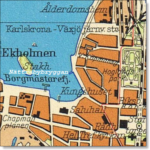 Axel E Lindvall drev själv det ångslupsbolag som ombesörjde vidaretransport från Nättrabyhamn in till Karlskrona. Av både gods och passagerare.