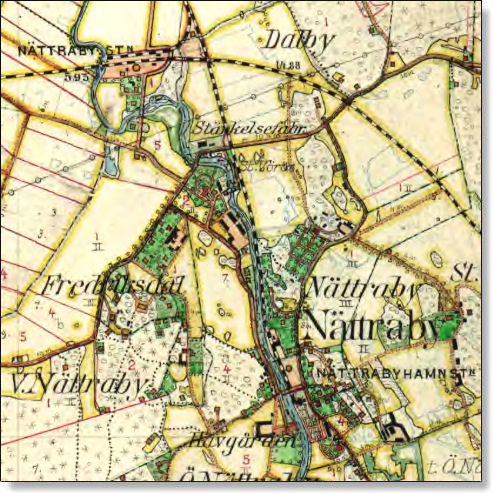 Från Havgården kunde Axel E Lindvall hålla uppsikt över både trafiken på järnvägen och den på Nättrabyån.